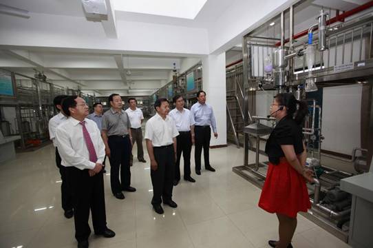 中央编办副主任张崇和一行在省编办主任王绪刚,市委常委、常务副市长赵润民视察我系化工单元操作实训室。