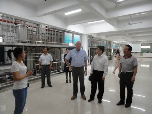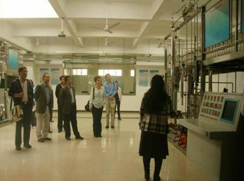德国复兴信贷银行项目经理托马斯·瓦伦特先生、迈克尔·安德烈斯先生,技术专家伯纳德·斯特里歇尔先生一行在省财政厅国际合作处处长刘宝平等的陪同下参观了我系化工单元操作实训室。