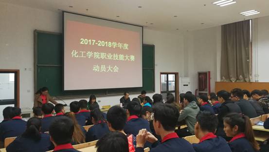 11月9日下午,公司组织2016级石油化工技术专业、应用化工技术专业全体员工,在教学楼206阶梯教室召开了职业技能大赛动员大会。会议由化工教研室主任李祯主持,党总支书记杨健、教学办副主任张娟、各赛项负责人及全体指导教师参加。
