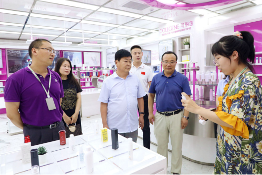 王辉一行先后参观了产品展示中心、研发中心、生产车间,了解了该公司研发团队专业设置、产品科研能力、市场占有率、人才培训等方面的情况。王辉对巨子生物在医疗器械领域和医学美容领域做出的成绩表示肯定。