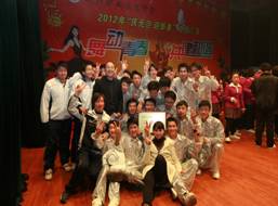 舞蹈《搏》在庆祝元旦文艺晚会上表演 腰鼓队在运动会开幕式上表演