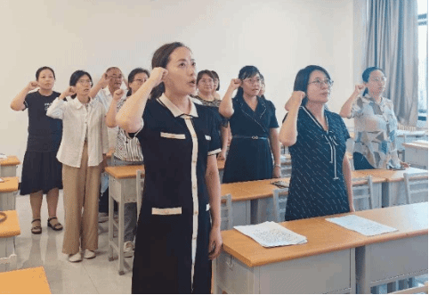 会上,全体教职工在党总支书记郭杨华的带领下庄严宣誓,铮铮誓言,掷地有声。一份承诺,一份责任;一次宣誓,终身使命。