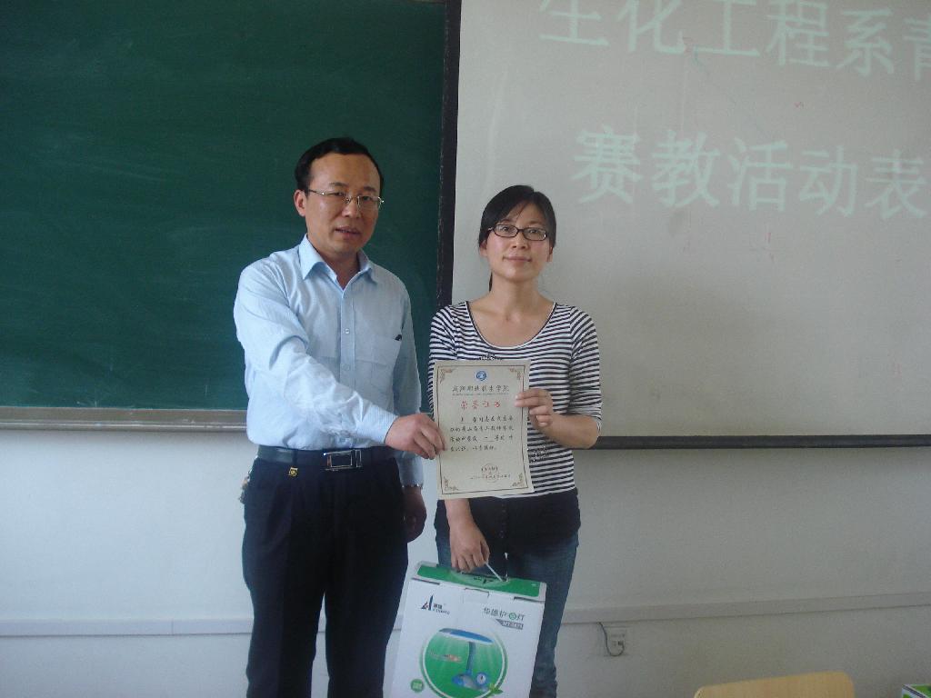 4月25日下午,我系于实验楼515多媒体教室召开了生化工程系第二届青年教师赛教活动表彰大会。系副主任王芳宁对本次活动做了总结,教学办主任王晓霞宣布了获奖教师名单,系领导为获奖教师颁发荣誉证书和奖品。系主任侯党社在讲话中指出此次赛教活动有力的提升了青年教师的授课水平,并强调青年教师作为我系的中坚力量,要不断提高思想政治觉悟,要勤学习、多思考、善总结,要坚持精讲多练、言传身教,全面提高教学能力和教学水平,为公司创建陕西一流、全国知名、工科特色的示范高职院校做出贡献。