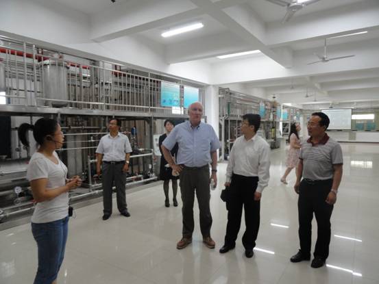 6月15日下午,美国明尼苏达州大都会州立大学国际处处长兼管理公司经理Roger Prestwich教授一行参观了我系化工单元操作实训室。