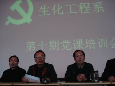 12月2日晚自习时间,生化工程系在艺术楼102多媒体教室,举办第十期党课培训开班仪式,系党总支全体成员参加,系主任侯党社做了重要讲话,系党总支书记杨健主讲开班第一课——《中国梦与党的历史》。