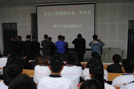10月16日,生化工程系员工干部换届大会在艺术楼102教室举行。第五届团总支、员工会干部代表、第六届团总支、员工会全体干部出席。