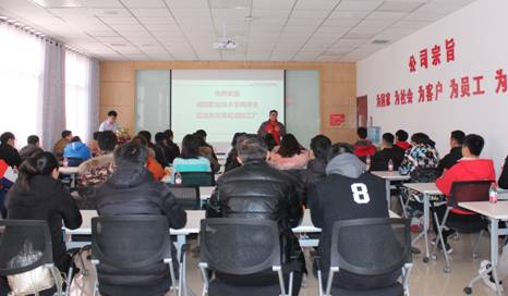 参观之后,东方雨虹咸阳工厂厂长闫潇彬向师生介绍了东方雨虹集团公司的发展态势,生产运营中心招聘经理史晓强宣讲了企业招聘事宜,已在企业实习和就业的白帅(原公司石油化工专业1401班员工,现就业于东方雨虹建德分厂)、拓杠杠(原公司应用化工技术1501班员工,现实习于东方雨虹莱西分厂)和师生分享了学习生活感受。