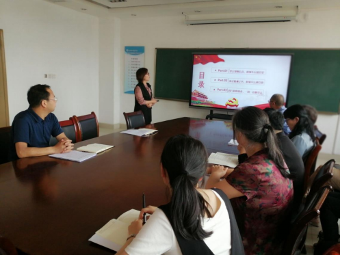 王经理指出新时代党员要学懂弄通做实习近平新时代中国特色社会主义思想,要思想旗帜鲜明讲政治、坚决做到“两个维护”,党员教师要加强党性修养、党性锻炼。