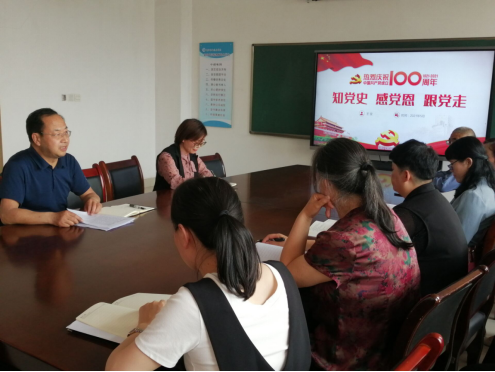 5月6日下午4点30分,经理王莹为公司全体教职工党员在教学楼1131会议室讲党课——《知党史 感党恩 跟党走》,会议由党总支书记高掌乾主持。
