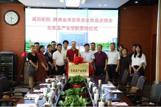 双方在与会人员的一同见证下,签署了共建“咸阳职院化妆品产业公司”合作协议,并为“化妆品产业公司”揭牌。
