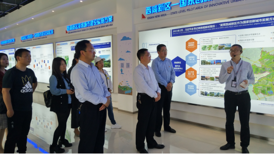 活动第三站,交大创新港。西安交通大学研究生院坐落于沣西新城交大创新港,讲解员给各位老师在沙盘上展示了创新港的发展历程,从选址到教学楼、宿舍楼等建成只用了一年的时间,创造了短时间记录。交大创新港的落成将为西咸新区的发展带来更多的机遇。